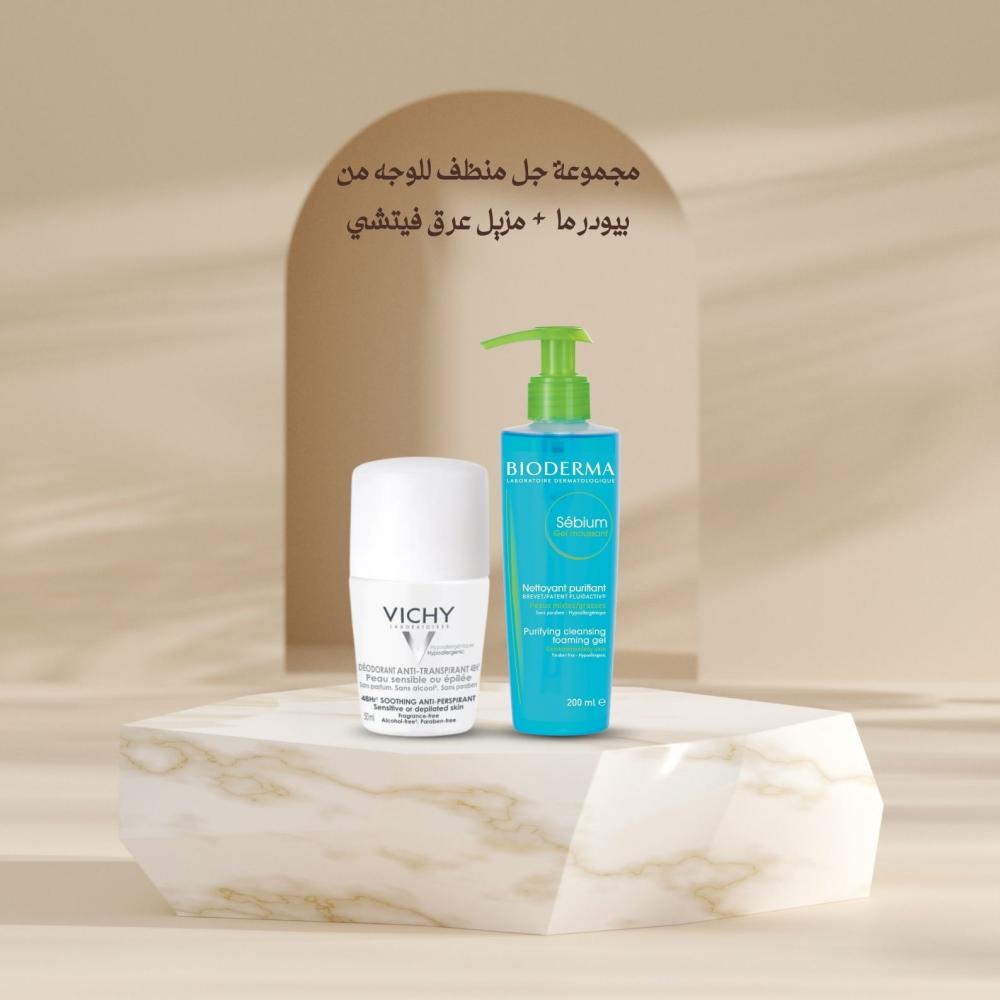 مجموعة جل منظف للوجه من بيودرما + مزيل عرق فيتشي
