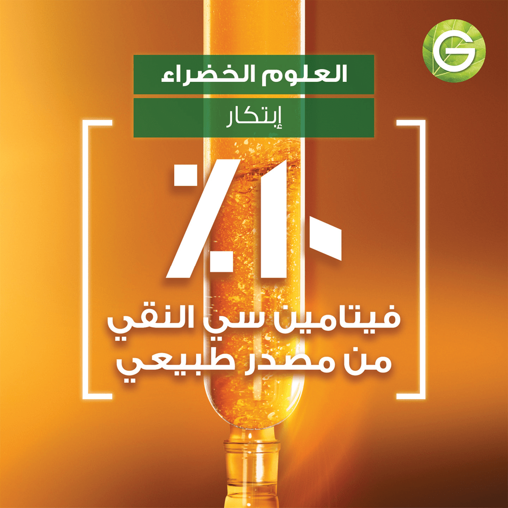 للحصول على أفضل النتائج، يستخدم مع سيروم Garnier 30X Vitamin C المعزز في النهار.